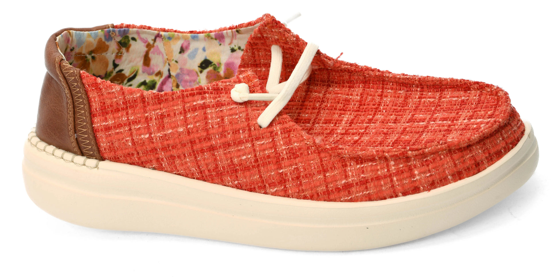 These are the Perfect pair of boat shoes out there and they are made by Corkys. They are in a Coral Tweed, which is going to go with so many things in all Seasons. They have that comfy insole we all can't get enough of and that Corkys is known for. And they're easy on and easy off which makes them an amazing shoes for traveling or long days. Theses shoes can be paired back with your favorite pair of denim, some shorts, wide leg trousers, dresses, and of course a skirt. You are going to be comfortable and always cute!