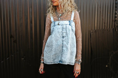This denim tank is soo CUTE! Especially paired with a mesh top underneath. This tank was designed to give you a denim jean repurpose feel. It's flowy and perfect for spring and summer as it is very lightweight.
