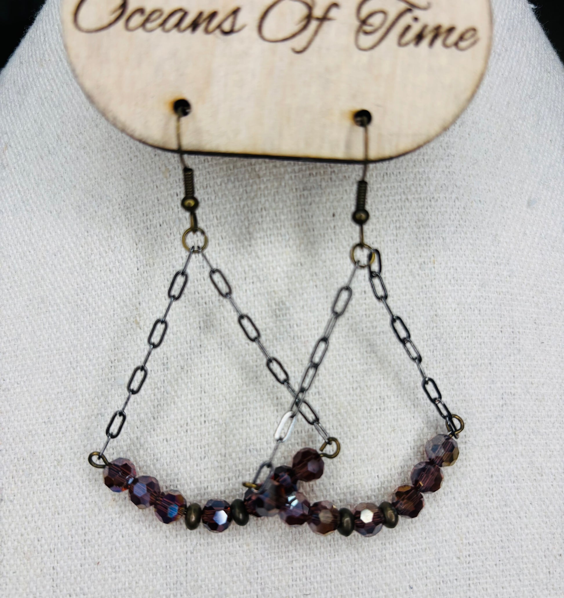 Brighten your day with the Starlit Iris Earrings! Handmade with iridescent purple glass beads, these lightweight earrings dangle from sleek gunmetal chains and antique bronze hooks. Nickel-free and comfy, their playful sparkle and easy hook backings make them the perfect accessory to twinkle through any occasion.