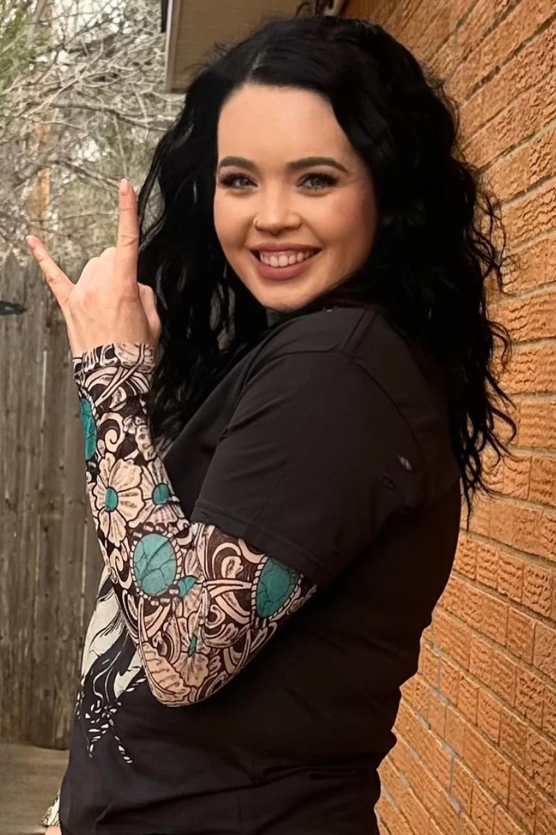 Unique and stylish, the Tattoos On This Town Mesh Top will make you stand out from the crowd. This top features a trendy tattoo mesh design, with cute and adorable turquoise and tooled flowers. Express your individuality and fashion sense with this top.