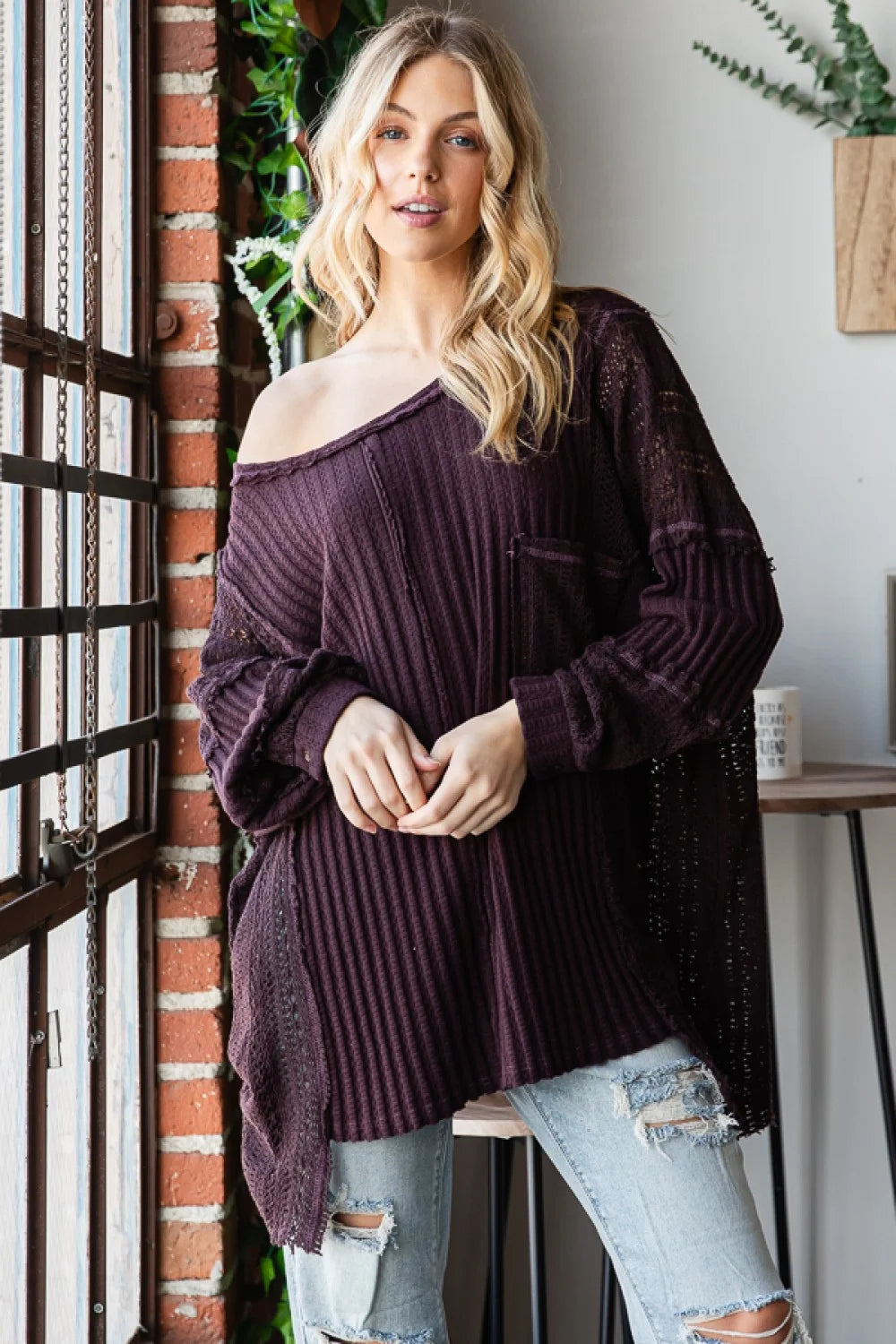 This is a gorgeous mixed media top by Oli and Hali and it has all the best detail! We are loving the oversized fit and the flowy silhouette it creates. This beautiful long sleeve top will be perfect as the weather cools down into fall and winter months.